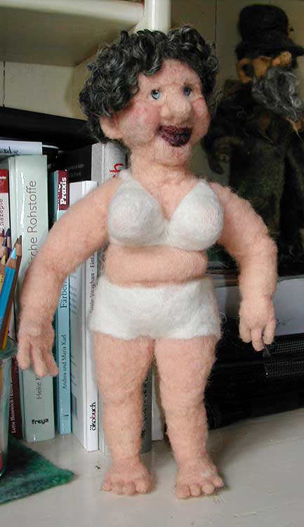 Alle Figuren sind mit Wolle trockengefilzt in Nadelfilz-Technik – nach der Fantasie oder nach lebenden Vorbildern. Zum Teil haben die Figuren genähte Kleidung aus Stoff. Die Theaterpuppen sind Stabpuppen ("Marotten"), Kopf und Hände sind aus Filz, der Körper aus Stoff. Alle Puppen sind Unikate.